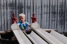Hop into a barrel cart for a fun tractor-pulled ride around the farm.